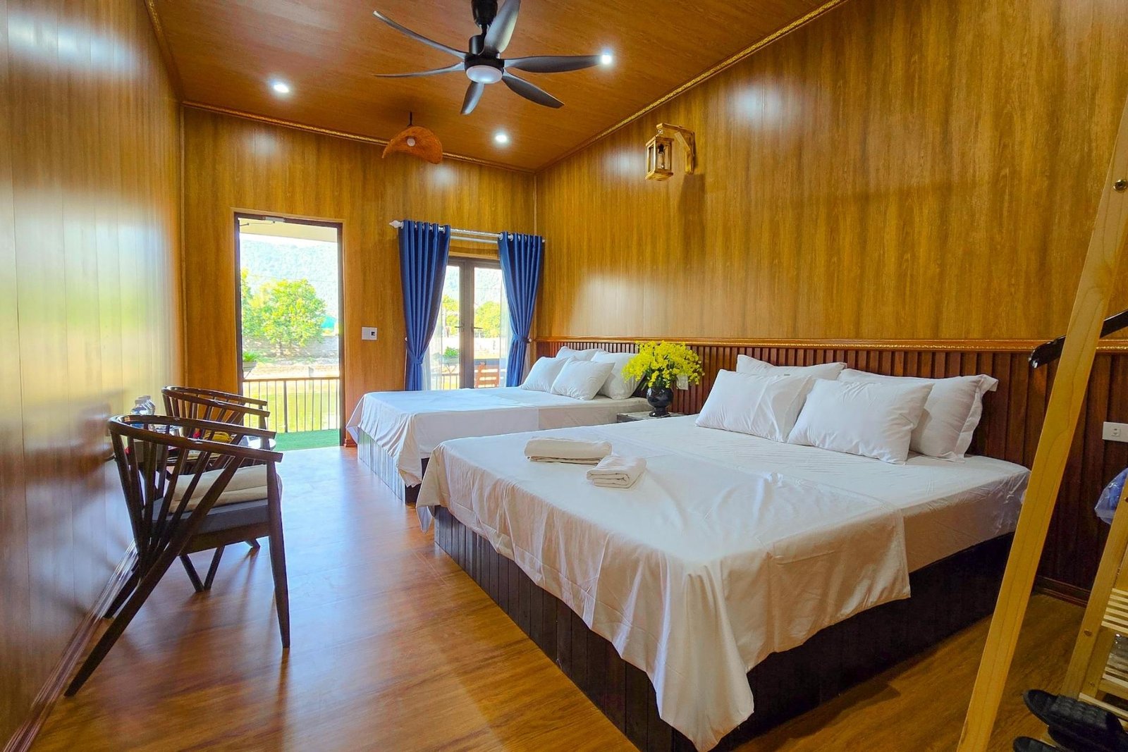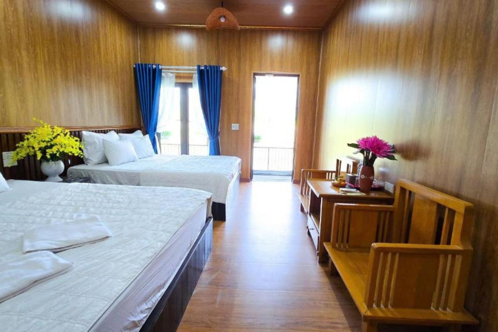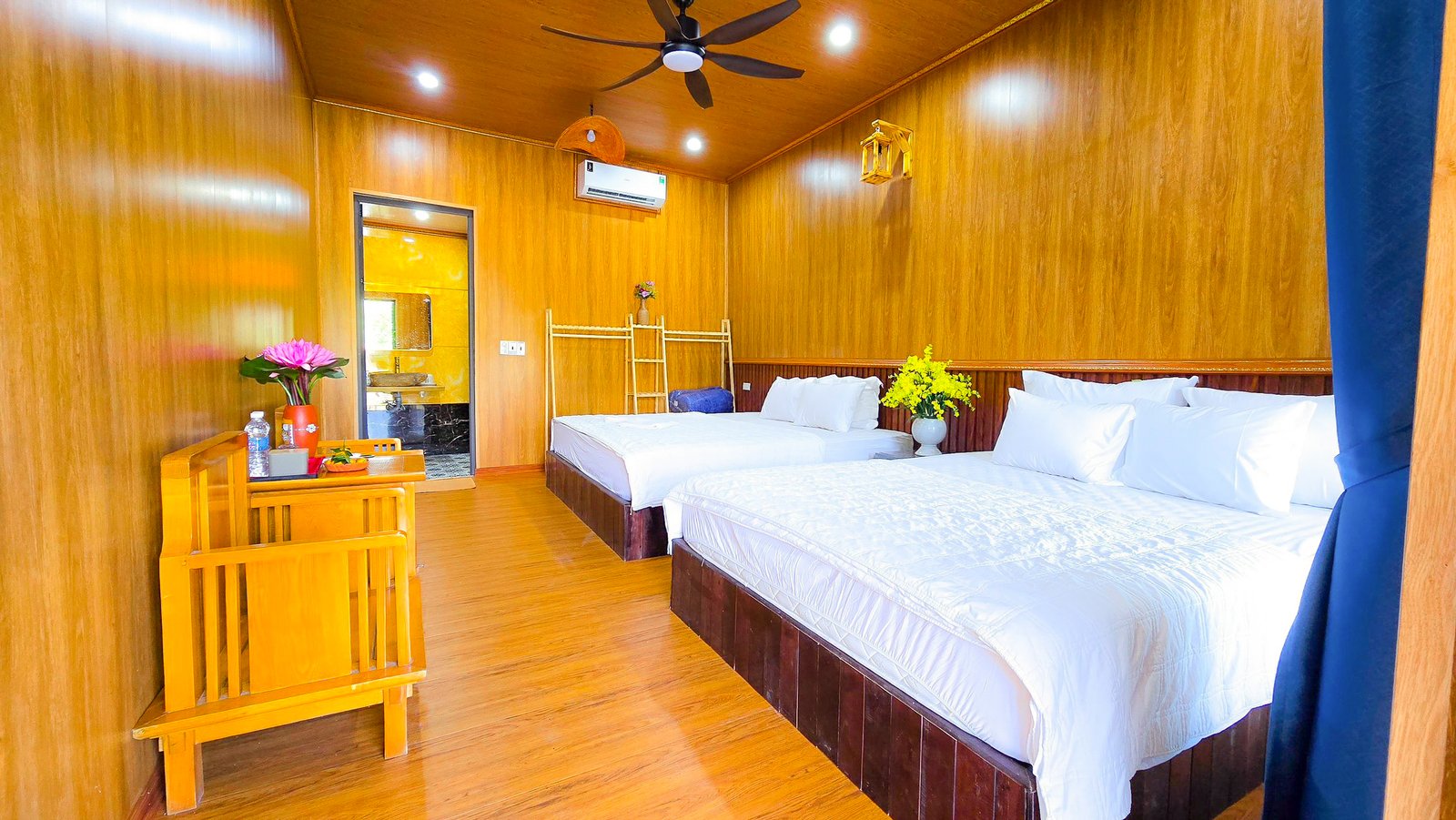 Enjoy a comfortable stay in our Deluxe Family Room at Tam Coc Holiday, offering stunning lake views and modern amenities for the whole family. The room features two cozy beds and a private bathroom equipped with a walk-in shower, hairdryer, slippers, and complimentary toiletries. Designed for both relaxation and convenience, the room also includes air conditioning, a seating area, a work desk, and soundproof walls, providing a peaceful and enjoyable retreat for families.