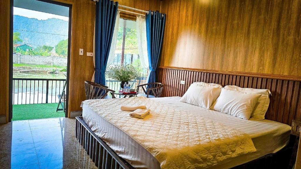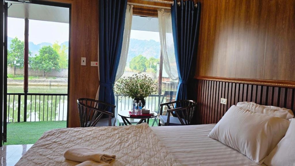 Experience comfort and elegance in our Deluxe Double Room at Tam Coc Holiday, featuring breathtaking lake views. The room is furnished with a comfortable double bed and a private bathroom with a walk-in shower, hairdryer, slippers, and complimentary toiletries. For your convenience and relaxation, the room also offers air conditioning, a seating area, a work desk, and soundproof walls, making it the perfect retreat to unwind and enjoy the serene beauty of Tam Coc.